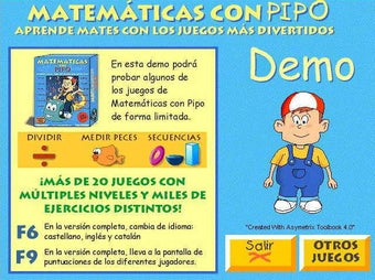 En este juego los niños y niñas viajarán a través del tiempo con destino a el Egipto faraónico. La misión de Pipo y Cuca será ayudar al faraón a construir una pirámide. Para lograrlo deberán superar pruebas matemáticas. Realizarán cálculos mentales, sumas, restas, ordenaciones, seriaciones, comparaciones, medirán, comprobarán, comprarán con la moneda egipcia, etcétera. Con cada prueba superada obtendrán preciosas gemas que después cambiarán por los bloques de piedra que formarán la gran pirámide.Está destinado a afianzar el aprendizaje de los contenidos matemáticos específicos del 1º curso de la Educación Primaria, para niños y niñas de entre 6 y 7 años. Primaria:• Sistema decimal. • Operaciones (suma, resta). • Unidades de medida• Formas geométricas básicas. • Resolución de problemas. • Cálculo mentalContiene cientos de ejercicios, problemas y operaciones, permitiendo el aprendizaje individualizado y el seguimiento de cada alumno mediante un sencillo y divertido control de progresos.Las actividades son adaptables al ritmo escolar y están estructuradas en distintos niveles de dificultad.- Incluye Guía didáctica para padres y educadores.